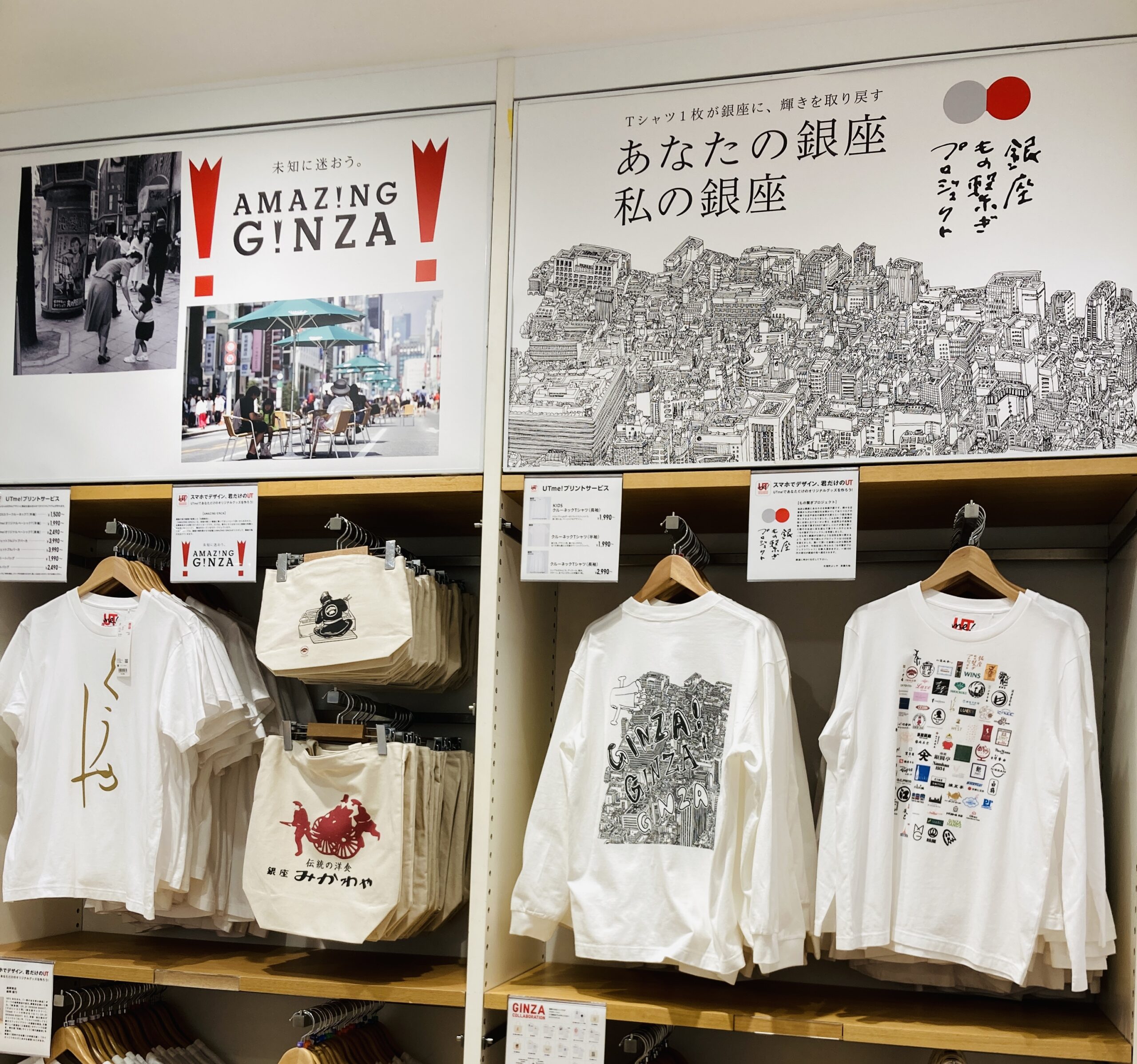 ユニクロ2021.09.17 銀座 UNIQLO GINZA もの繋ぎUTme! 2021年9月17日、UNIQLO 銀座店がリニューアルオープンしました。「銀座の街の絵」と「もの繋ぎ100社のロゴ」の組み合わせでオリジナルのTシャツやトートバッグを作ることができる「もの繋ぎUTme!」も販売していただけることになりました。売り上げの一部は銀座の街に還元されています。 ユニクロ