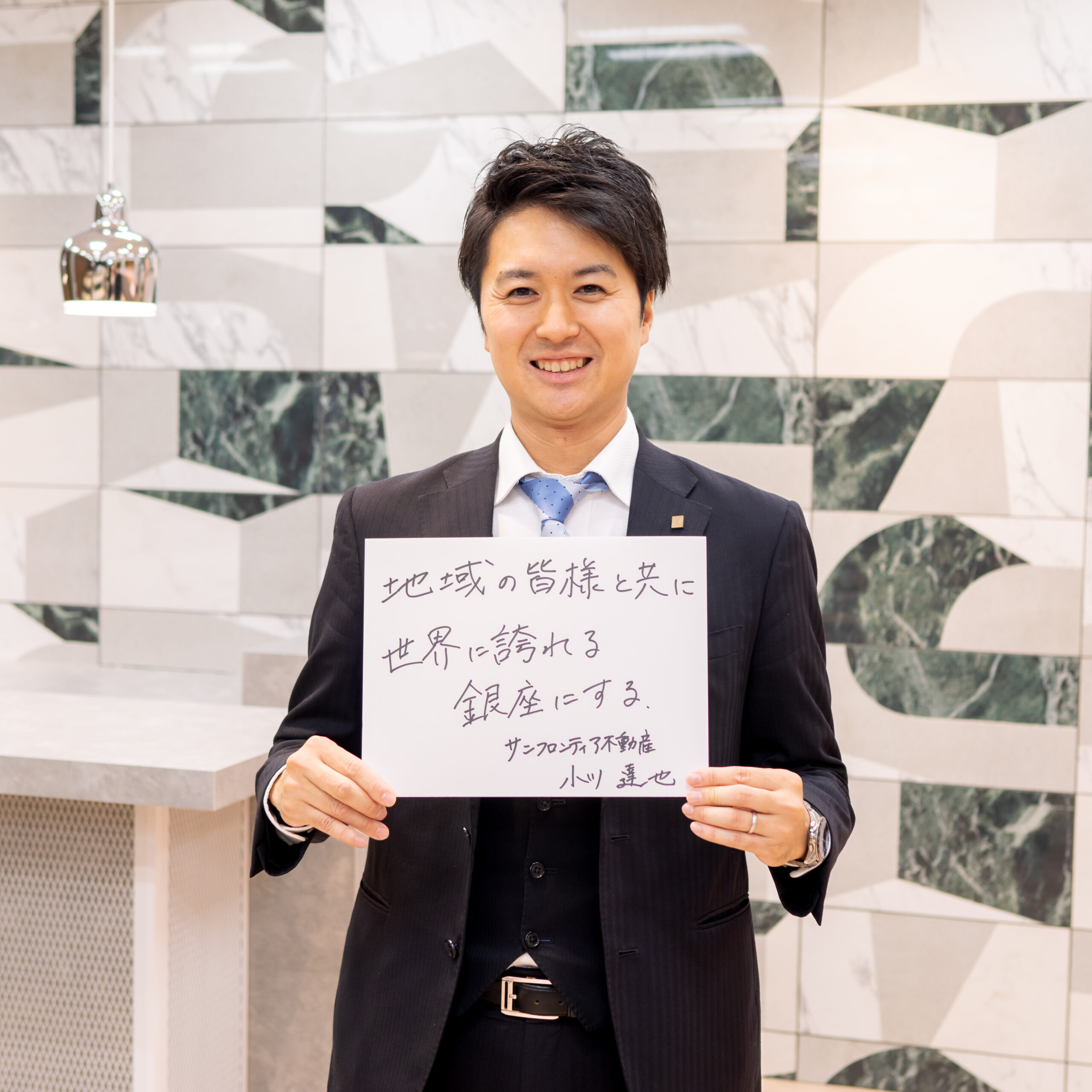 2009年に新卒でサンフロンティア不動産に入社し、銀座店に配属。銀座専門で賃貸仲介等の業務に従事し、銀座店での14年間の在籍期間のうち2016年から7年間は、店長を務めた。